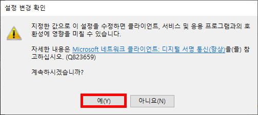 예(Y) 를 클릭합니다.