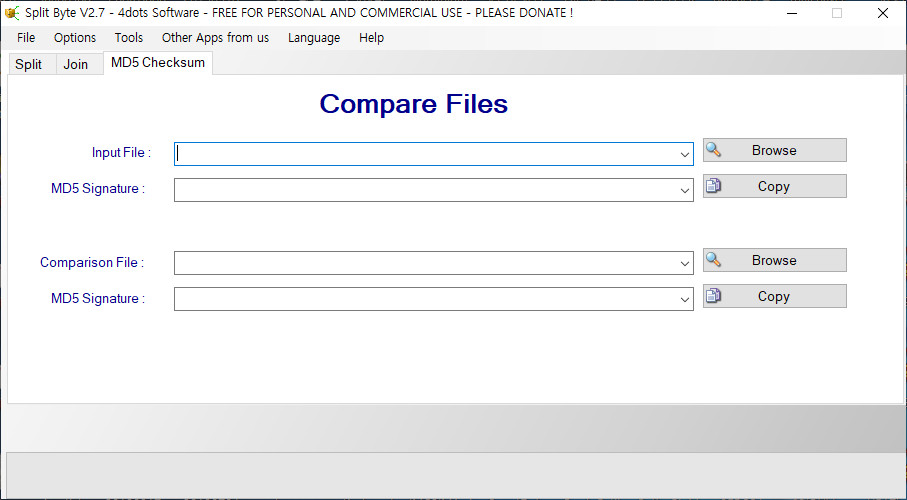 그런데, 이 프로그램은 바이트 단위로는 파일을 쪼갤수가 없습니다. Kilobyte, Megabyte 만 지원하니까요