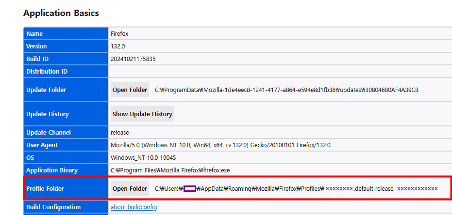 C:\ Users \ 사용자아이디 \ AppData \ Roaming \ Mozilla \ Firefox \ Profiles \