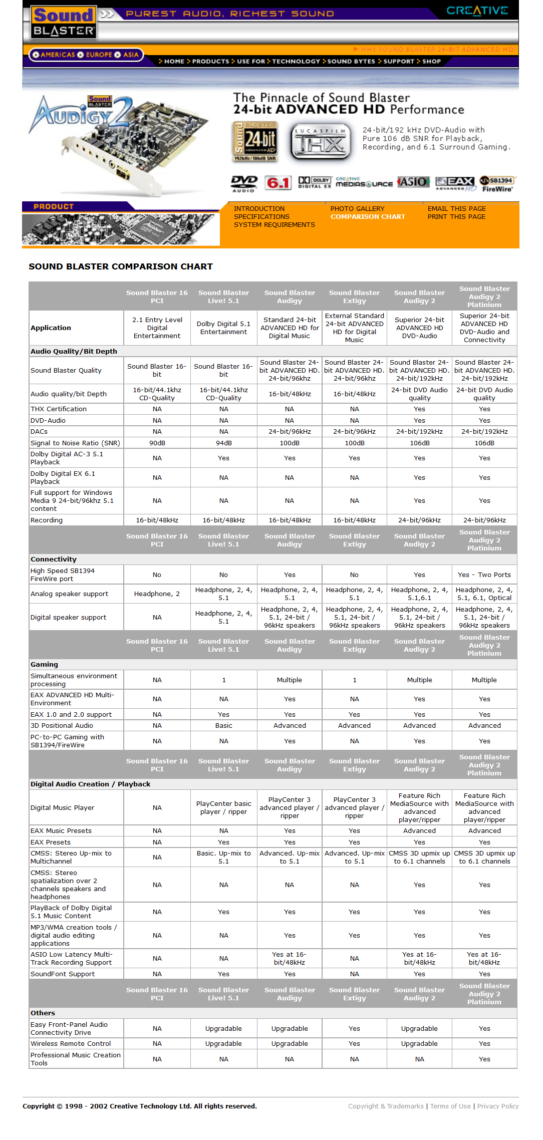 - The Audigy 2 series, including Gamer, Platinum, Platinum eX and OEM cards (SB0242, SB0244, SB0320, SB0240, SB0240P, SB0280).