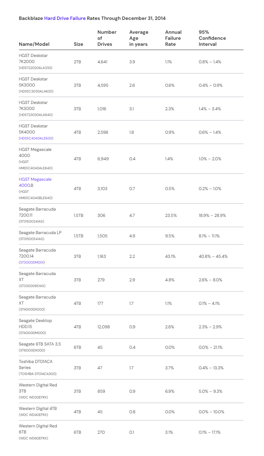 하드 드라이브가 많고, 하드 드라이브 모델도 많고, 표본이 충분히 크기 때문에 Backblaze에서 발표한 하드 드라이브 고장률은 하드디스크 구매시 아주 좋은 참고 자료가 됩니다.