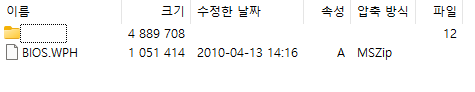 바이오스 실행파일은 인스톨쉴드로 만들어져 있습니다. 7-Zip 으로 보면 BIOS.WPH 라고 있습니다.