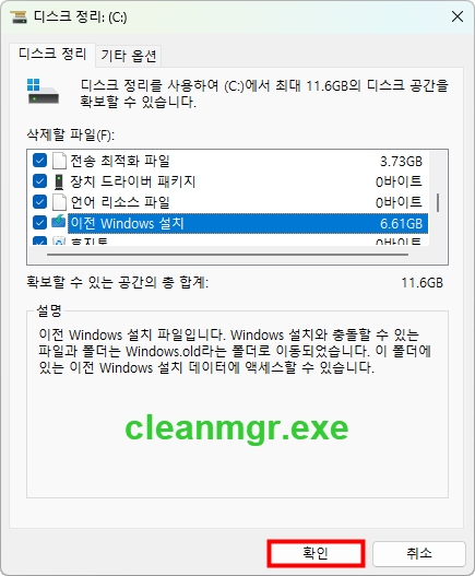 저는 디스크 정리는 글자수가 많아서 cleanmgr 을 선호합니다.