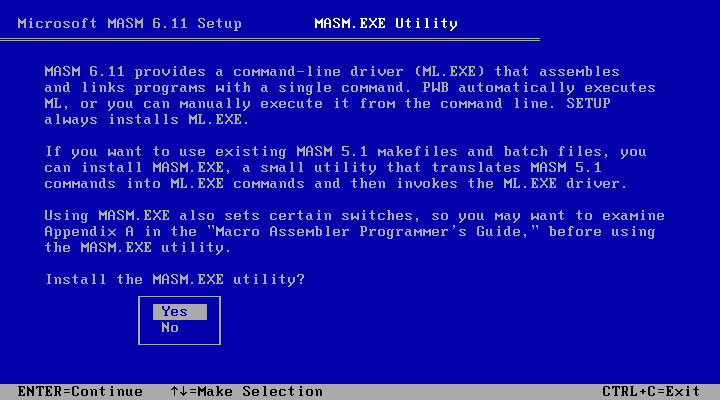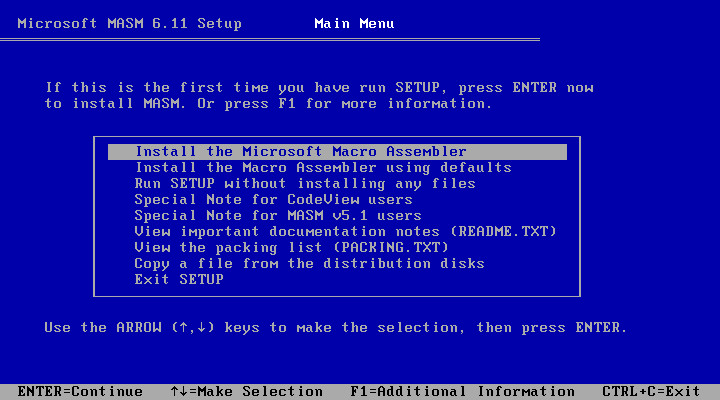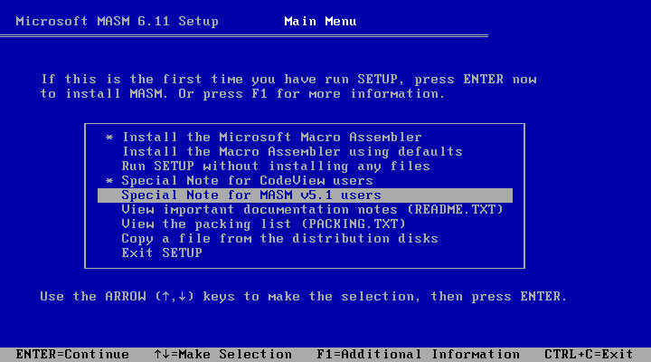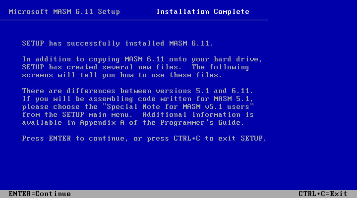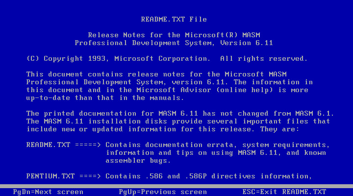 버전 6.11은 MS-DOS에서 실행되는 마지막 MASM (Macro Assembler) 버전입니다.