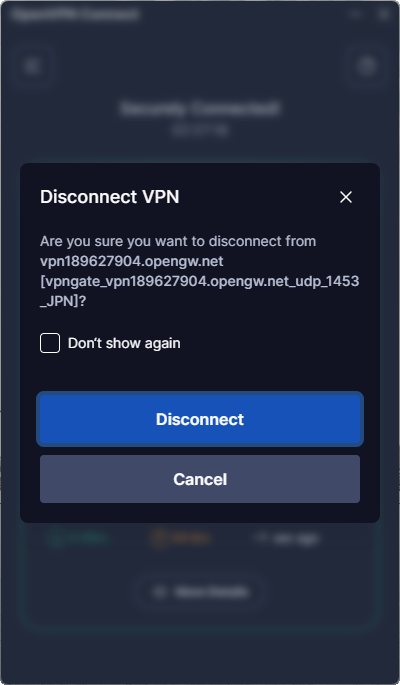 3. VPN 서버와의 연결을 끊되, VPN 클라이언트는 닫지 마세요.
