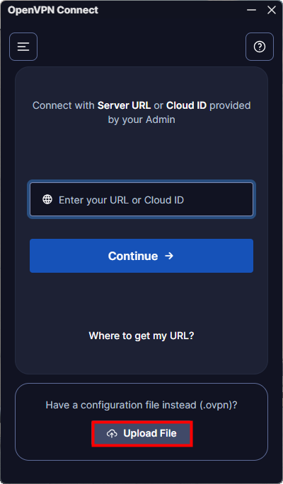 Cloud ID 는 필요없고 VPN 서버 구성 파일 .ovpn 만 있으면 됩니다.