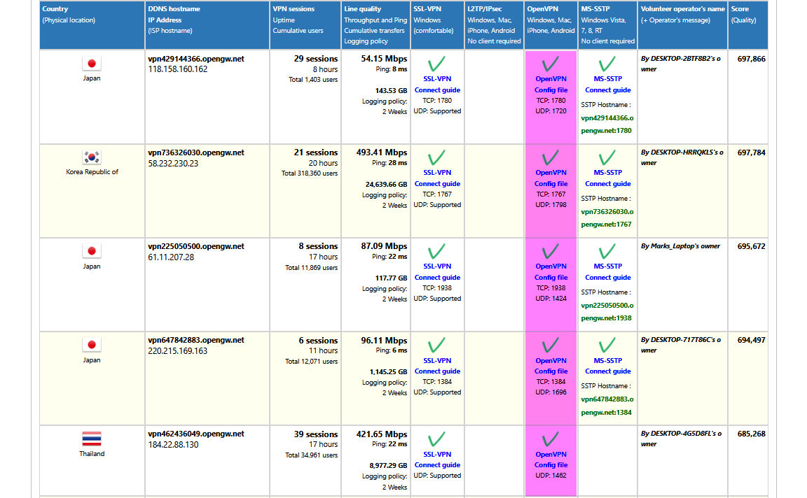 VPN 서버 .ovpn 파일은 아래 사이트에서 다운로드 받습니다.
