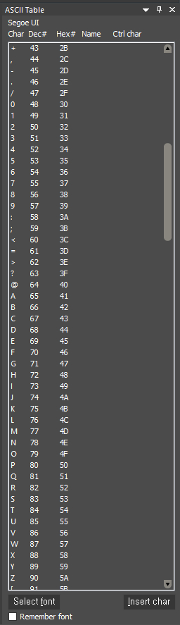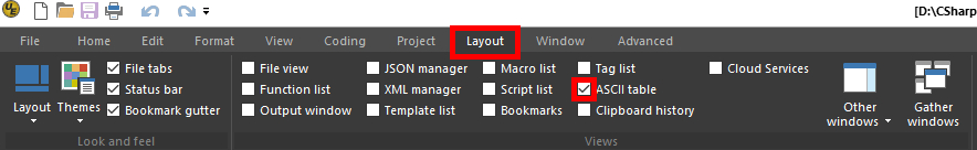 카테고리 없음 UltraEdit 에서 ASCII 코드 보기 by Programmer™ 2023. 9. 28. 울트라에디트 Version 27.00.0.94 에서 아스키 코드 테이블을 볼려면 아래 그림처럼 Layout 에서 ASCII table 을 선택해주면 됩니다. 그러면 오른쪽에 표시가 됩니다. 공유하기 게시글 관리 프로그래밍의 발견 저작자표시 비영리 변경금지 (새창열림)