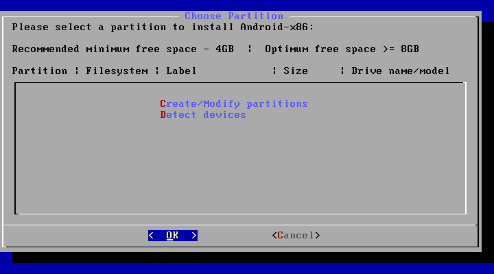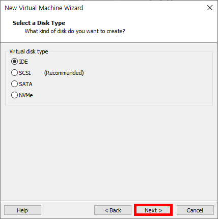 Android-x86 커널이 SCSI를 지원하도록 구성되지 않았기 때문에 가상 디스크 유형은 IDE로 변경해야 합니다.