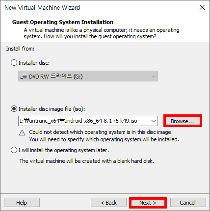 여기에서는 android-x86_64-8.1-r6-k49 을 사용하였습니다.