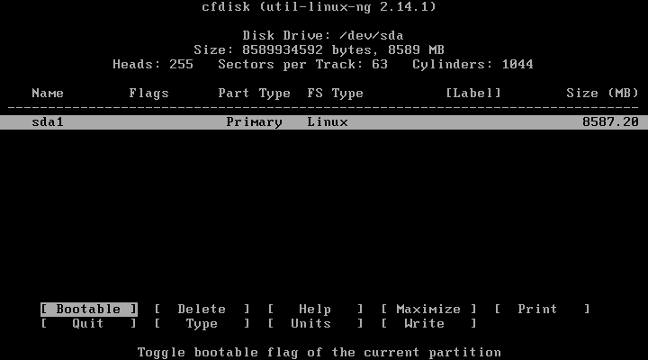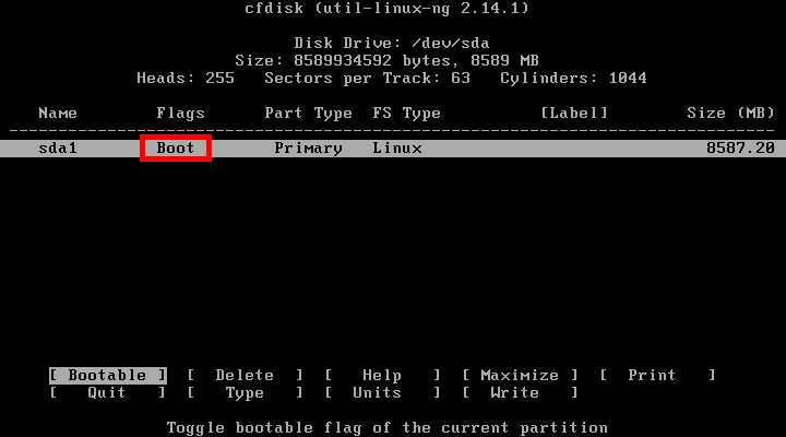 Bootable 을 선택하면 Flags 에 Boot 라고 표시가 됩니다.