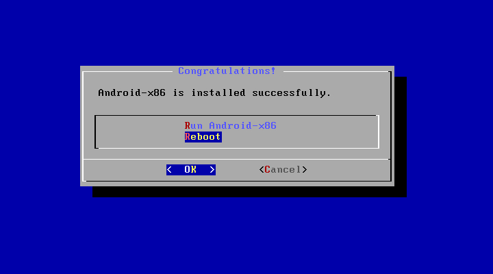 바로 Run Android-x86 을 해도 되지만 Reboot 를 해주는게 좋습니다.