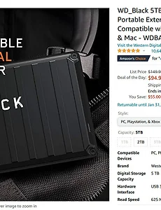 Amazon4 Amazon WD 4TB Gaming Drive works with Playstation 4 WD Black 5TB P10 Game Drive 5TB 짜리는 할인이 끝났구, 이제 Playstation 4 하드 디스크를 토요일 11월 28일 오후 5시까지 할인합니다. 조기품절되는 경우 오후 5시 이전에 끝나는 경우도 있으므로 필요하신 분은 서두르시기 바랍니다. 저는 제작년에 구매해서 사용중인데 디자인이 참 괜찮습니다. 겉은 플라스틱입니다. $ 92.99 + $ 8.95 = $ 101.94 https://www.amazon.com/Gaming-Drive-Playstation-Portable-External/dp/B07HKN92MZ/ 2020. 11. 27. Amazon WD Black 5TB P10 Game Drive 아마존에서 지금 블랙프라이데이 할인하고 있습니다. 오늘 2020년 11월 27일 오후 5시까지 입니다. 평소 구매가격에서 20달러 정도 빠집니다. ( $94.99 + $9.03 = $ 104.02) 2.5 인치 형이며 보증기한 3년, 케이스가 금속으로 되어 있어 괜찮습니다. 2개를 구입하게 되면 200 달러가 넘어서 관세가 붙으므로 개인당 1개만 구입하시길 바랍니다. https://www.amazon.com/WD_Black-Drive-External-Compatible-WDBA3A0050BBK-WESN/dp/B07VNTFHD5/ 적용기간 2020-11-22 ~ 2020-11-28 수입(과세) No 국가명 통화부호 환율 전주환율 증감 화폐단위 1 일본 JPY 10.7518 10.7503 0.0015 Yen.. 2020. 11. 27. WD Portable Hard Drive 아마존에서 2020 년 11월 27일 블랙프라이데이 할인을 합니다. 1주일 남았는데요. 검은색 기준으로 판매되고 있는 가격입니다. 블랙프라이데이 때는 보통 이 가격에서 제품에 따라 10~25 달러 정도 할인된 가격으로 팝니다. 1. https://www.amazon.com/Western-Digital-Elements-Portable-External/dp/B07X41PWTY/ref=sr_1_2?dchild=1&keywords=wd%2Bportable%2Bhard%2Bdrive&qid=1605804671&sr=8-2&th=1 가장 기본적인 성능에 충실한 제품입니다. 보증기한은 2년입니다. 2. https://www.amazon.com/Passport-Portable-External-Drive-Black/dp.. 2020. 11. 20. WD My Passport 4TB 2.5" Black Friday 날 아마존에서 구입한 WD My Passport 4TB 2.5" 입니다. $99.99 + $6.56 (Shipping & Handling) = $106.55 (전신환매도율 : 1,097.00 원, 청구금액 : 118,283 원)로 구매했습니다. 노란색을 사고 싶었지만 노란색은 할인을 하지 않아서 그냥 검정색으로 구매했습니다. My Passport 는 2016년에 첫 출시되었고 아래 사진 왼쪽이 2017년도 출시한 최신모델 WD Elements 입니다.무상기간과 기타 소프트웨어가 있냐 없냐 차이입니다.My Passport 는 하드웨어 암호화를 지원하므로 기업용으로 추천합니다.My Passport 는 Ultra와 달리 겉의 케이스가 플라스틱입니다. 외장형 3.5 인치 하.. 2017. 12. 16. 이전 1 다음